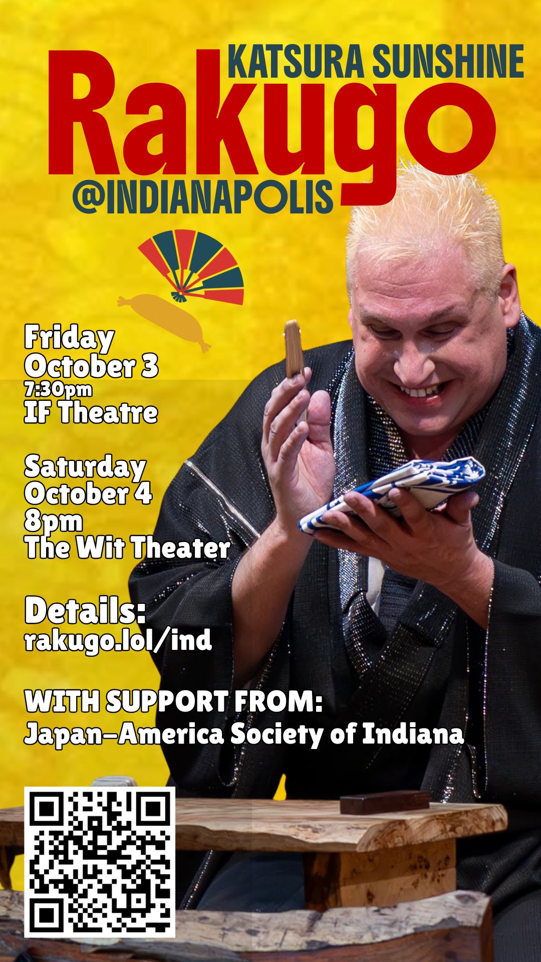 In JASI’s tradition of presenting the best of Japan's Rakugo (the art of comedic storytelling), we’re pleased to announce two shows by the renowned Katsura Sunshine in Indianapolis.